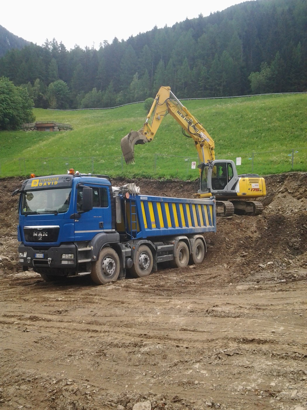 Dank unserer eigenen Bagger (klein & groß) sowie LKW mit Tieflader und Materialkiste sind wir flexibel und termingerecht eisatzbereit.